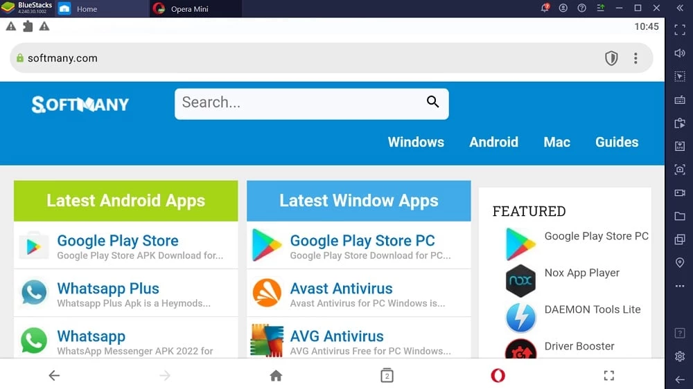 O aplicativo Opera Mini está disponível apenas para Android, mas você pode executá-lo em um PC através de um emulador de Android. O BlueStacks é um dos métodos mais confiáveis para baixar qualquer aplicativo para um PC ou notebook. O emulador facilita o acesso a qualquer aplicativo Android. Basta seguir as instruções fornecidas.